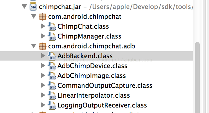 其实它最终实例化的就是ChimpChat.jar库里面的AdbBackend这个Class。其实这个类就是封装了adb的一个wrapper类。