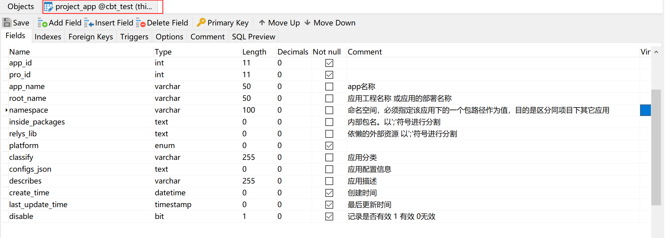 表 project_app