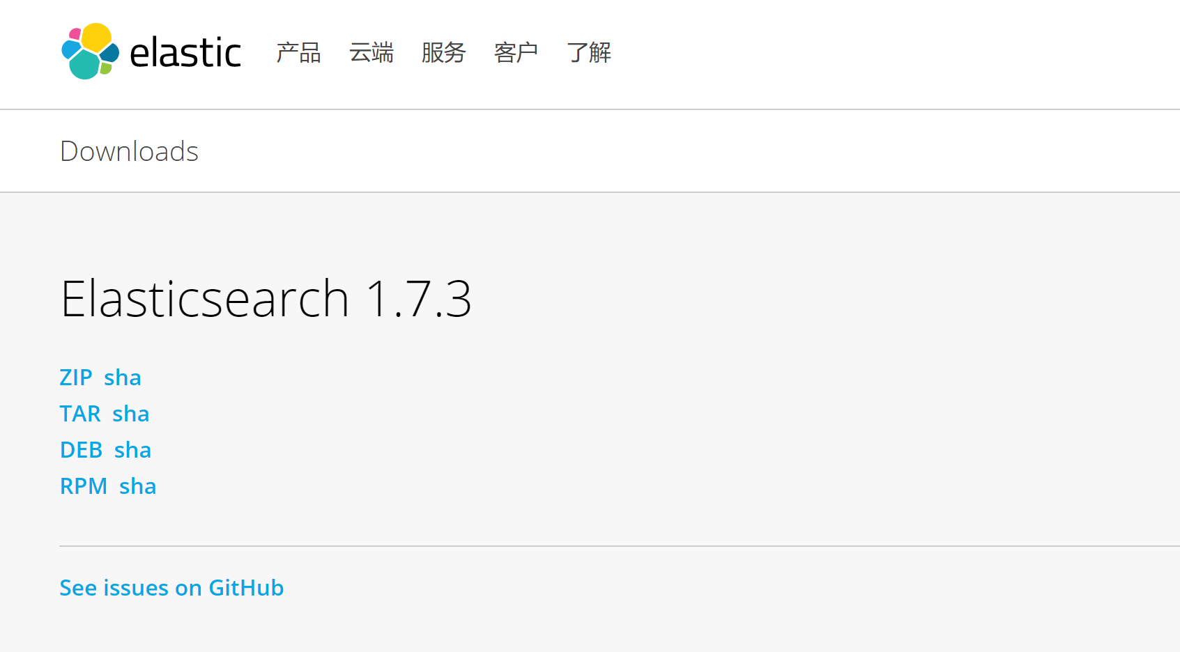 官网:https://www.elastic.co/cn/downloads/past-releases/elasticsearch-1-7-3