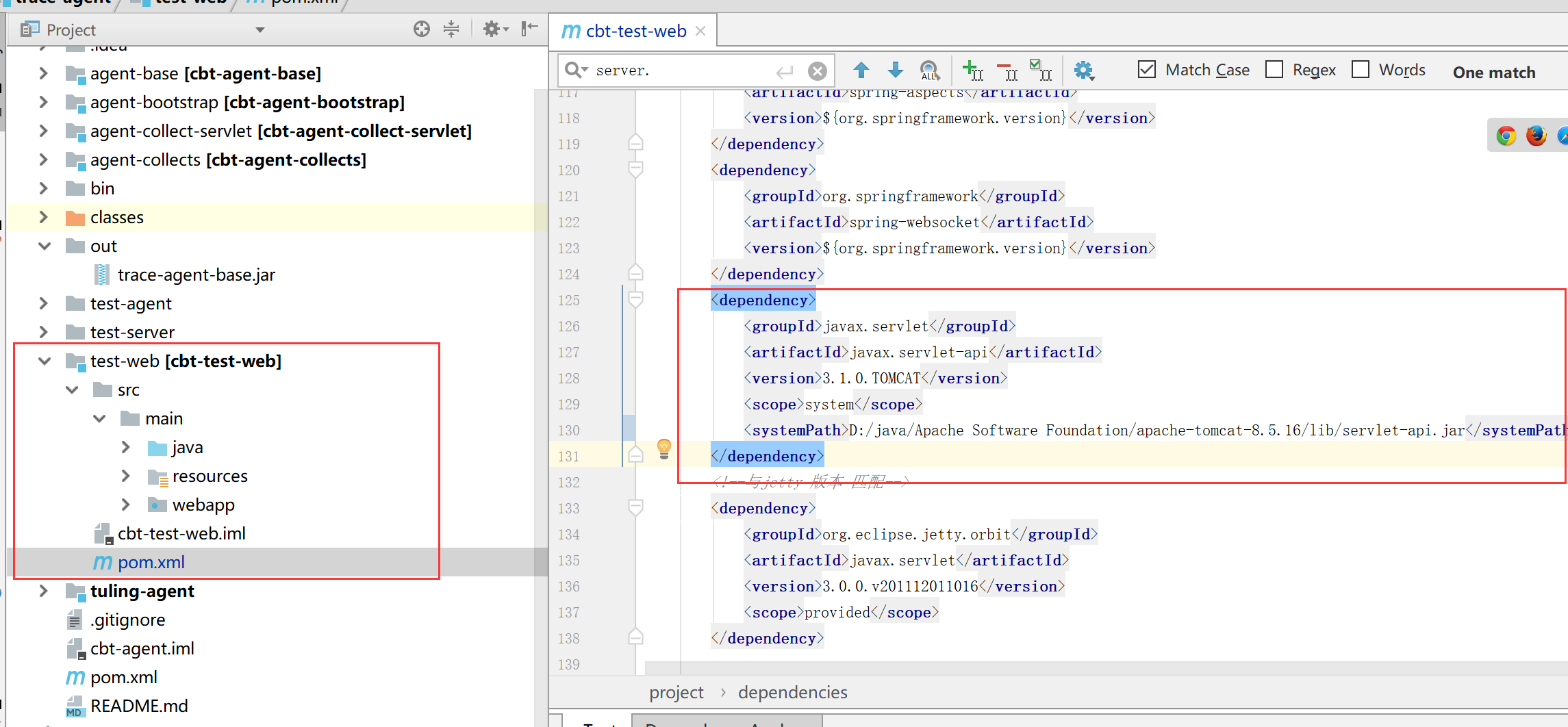 - 修改test-web的pom文件,tomcat修改成本地地址