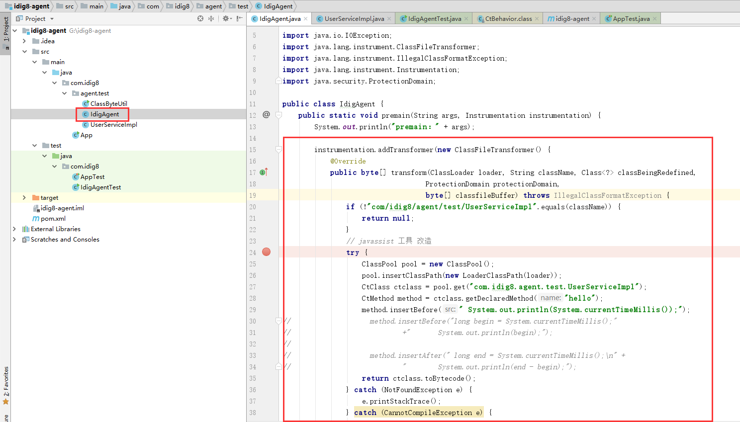 CtClass ctclass = pool.get("com.idig8.agent.test.UserServiceImpl");