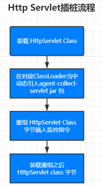 字节码插是指在数据装载前在HttpServlet.service 插入监控指令,以拦截Http请求,其插桩的过程。