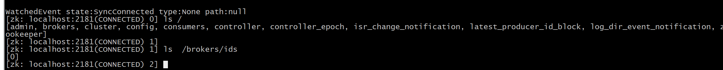 在zookeeper中也添加了主题目录,看来kafka跟zookeeper简直是形影不离。