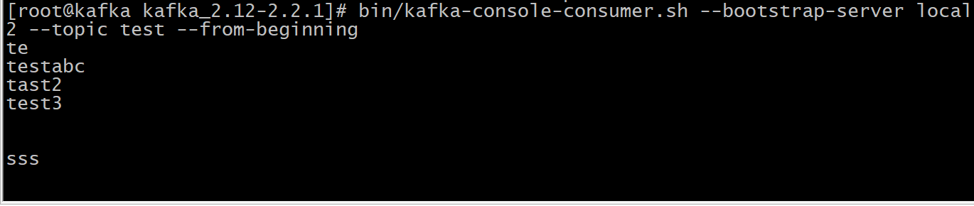 bin/kafka-console-consumer.sh --bootstrap-server localhost:9092 --topic test --from-beginning