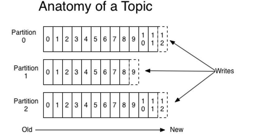Topic是一个类别的名称,所有的message发送到Topic下面。对于每一个Topic,kafka集群按照如下方式维护一个分区(Partition,可以将消息就理解为一个队列Queue)日志文件。