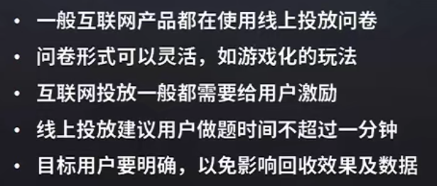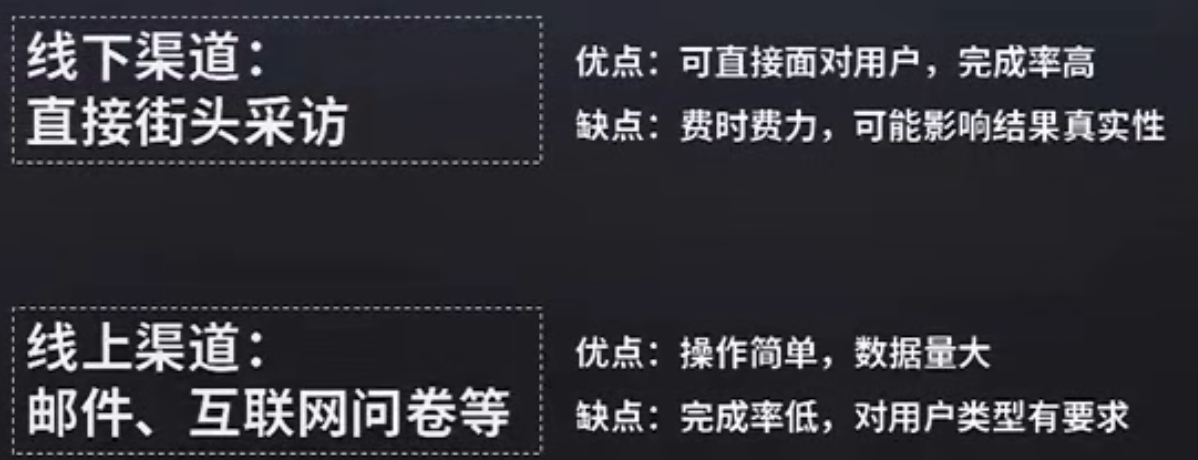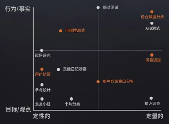 PS:用户反馈【反馈渠道(公开,半公开,内部),反馈处理的方法】,用户访谈【访谈目标,访谈对象,访谈清单,访谈技巧,访谈报告】,问卷调查【调查目标,调查对象,问卷设计,问卷投放,结果分析】,可用性测试【测试目的,资源准备,用户招募,测试技巧,测试报告】,后台数据分析【常见数据类型和工具】。用户研究就是不断的研究用户,最终找到需求点的过程。