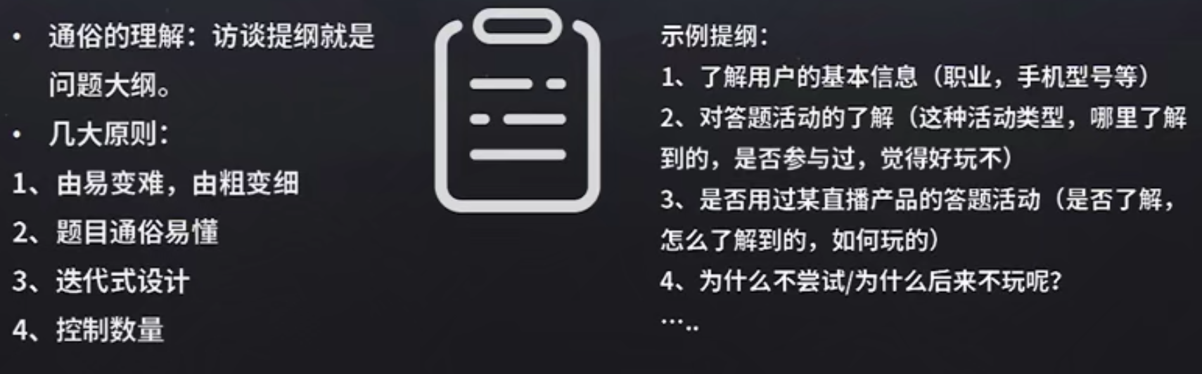 - 聊天式引导,生活化提问避免倾向性问题,带着场景来提问。