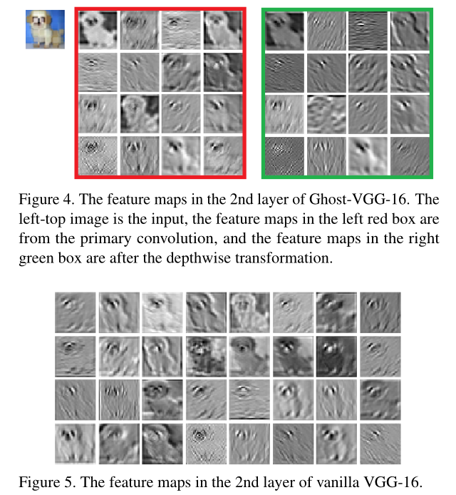 图4和图5同样还是在说明VGG-16提取到的特征图有很多信息冗余,但是Ghost-VGG-16没有,并且提取到的特征图信息与VGG-16差别不大。