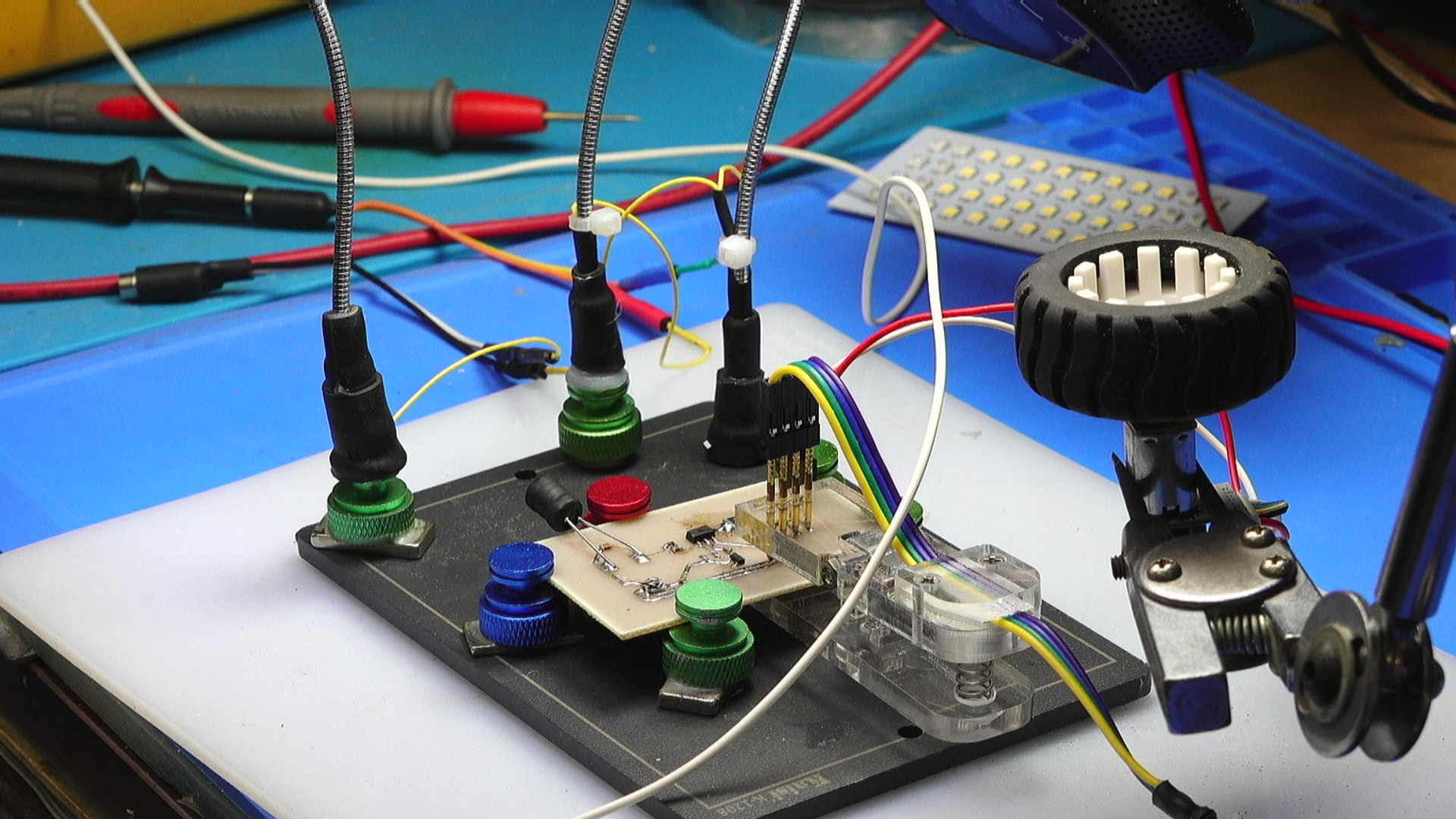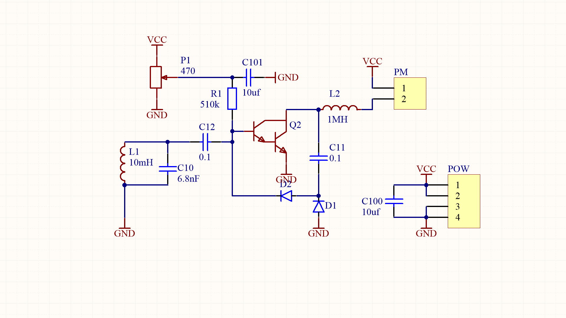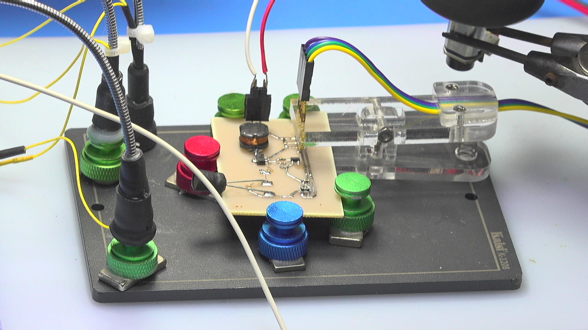 最后, 重新将电路恢复到最初的状态, 只是将输入信号的波形缩短到只有 2个信号周期, 可以看到, 当输入信号的幅度为 0.05V的时候, 输出信号便从开始的高电平, 下降到低电平。可以清楚看到, 当输入信号的幅度超过 0.024V的时候, 输出信号便呈现高电平, 这应该就是上拉电路中出现了正反馈, 使得电路被触发所形成的高电平稳定状态。但是随着时间流逝, 放大信号使得R2下面的平均电压降低, 可以看到, 输出信号逐步退出放大状态, 当输入信号达到一定程度之后, 输出便开始维持在高电平了。
