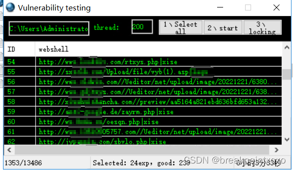 全自动批量web拿shell工具【2023最新】这是一种内部有多个漏洞,可自动进行url采集,自动爬虫多个引擎和友情链接url,过狗一句话,轻松日出上千。
