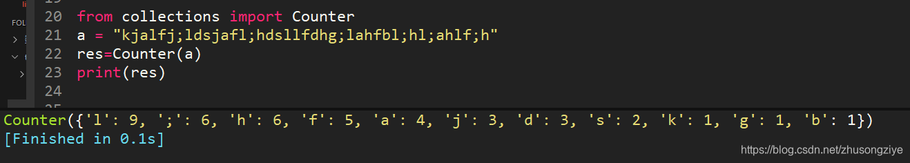 25、利用collections库的Counter方法统计字符串每个单词出现的次数"kjalfj;ldsjafl;hdsllfdhg;lahfbl;hl;ahlf;h"