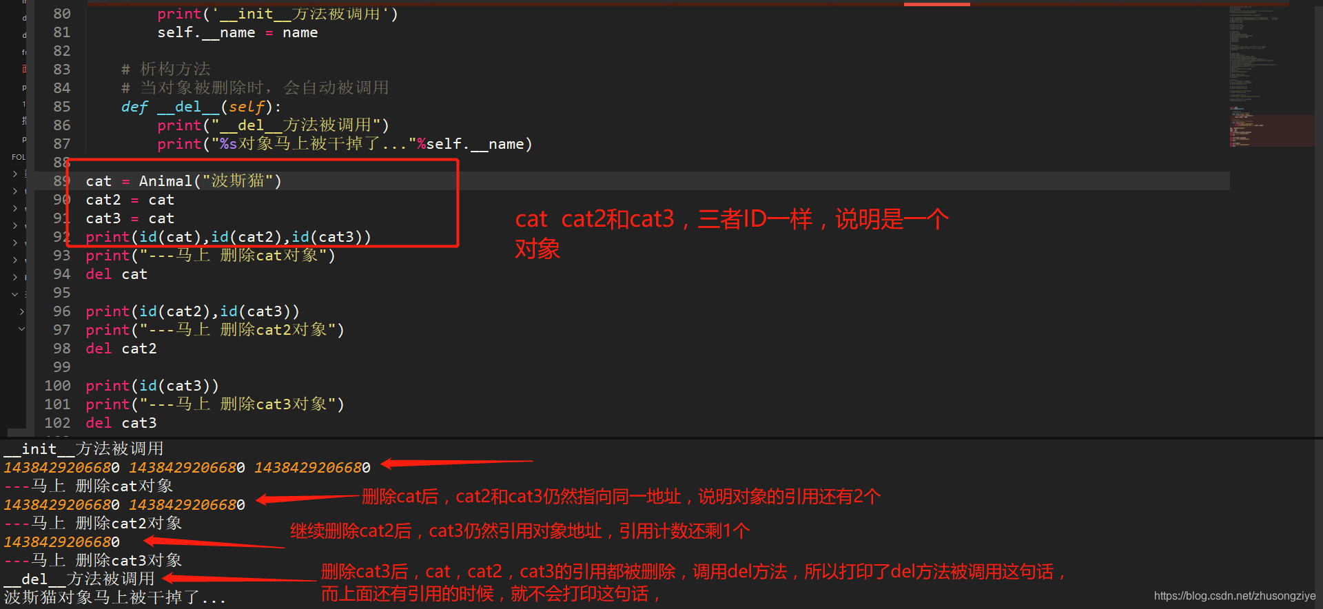 当使用del删除变量指向的对象时,如果对象的引用计数不为1,比如3,那么此时只会让这个引用计数减1,即变为2,当再次调用del时,变为1,如果再调用1次del,此时会真的把对象进行删除