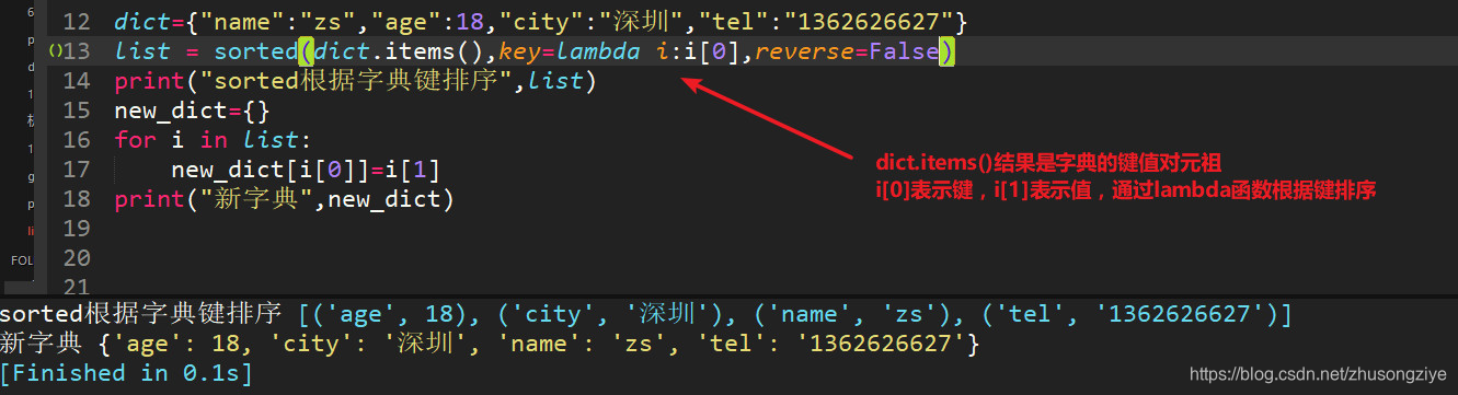 有没有发现dic.items和zip(dic.keys(),dic.values())都是为了构造列表嵌套字典的结构,方便后面用sorted()构造排序规则