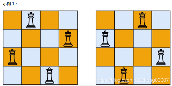 解释:如上图所示,4 皇后问题存在两个不同的解法