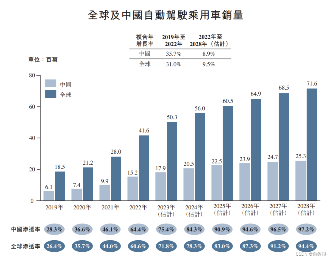 ▲ 全球及中国自动驾驶乘用车销量 图源黑芝麻智能招股书