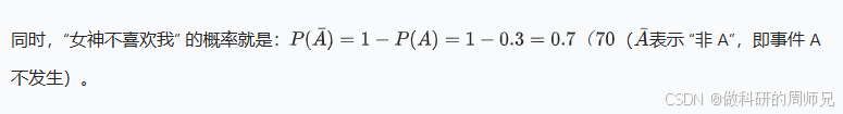 比如我们通过女神的闺蜜了解到:“女神平时很高冷,很少喜欢别人”—— 基于这个背景,我们合理假设:P (A) = 0.3(即 30%)。