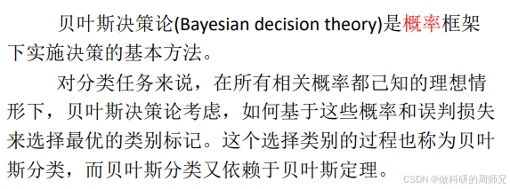 对于入门同学来说,不需要一开始就深究复杂的推导,先记住贝叶斯决策论的核心定位: