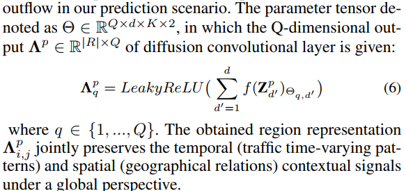 我们进一步将区域间的空间关系纳入我们的预测框架。特别是,我们开发了一个图形结构的扩散网络,以完善学习的分辨率感知区域表示。所设计的扩散卷积运算在图的每个顶点上执行扩散过程生成新的特征表示