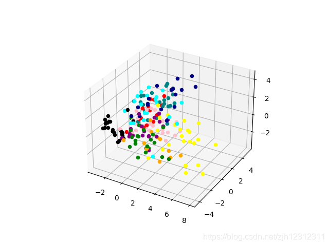 ax.scatter(v3[i][0],v3[i][1],v3[i][2],color=color[y[i]])