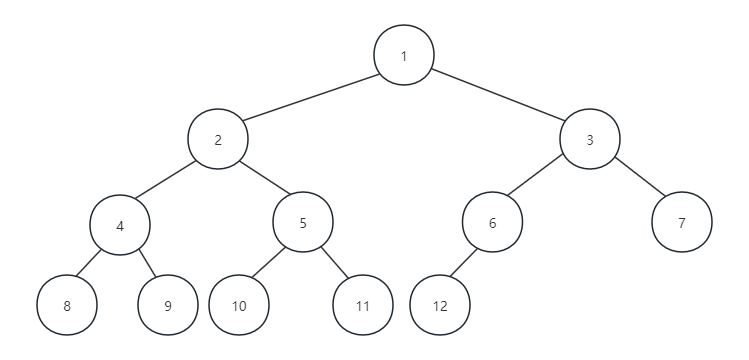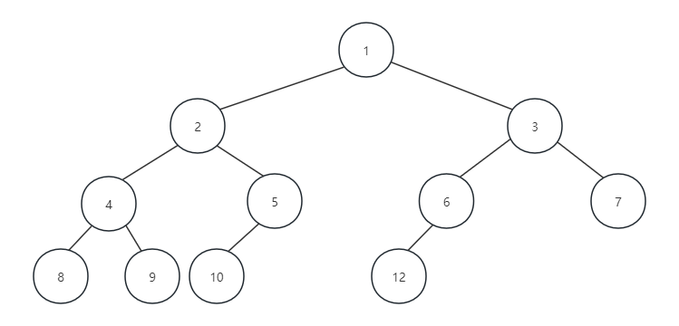 对一棵具有n个节点的二叉树进行层序编号,如果编号为i(1≤i≤n)的节点与同样深度的满二叉树中的编号为i的节点在二叉树中的位置完全相同,则这棵二叉树称为完全二叉树。如下图: