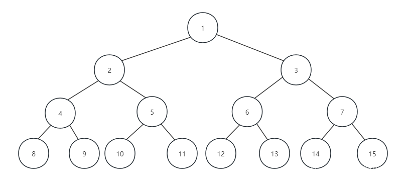在二叉树的第i层至多有个节点(i≥1)。这个性质很容易理解,我们观察一下满二叉树: