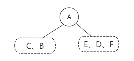 然后我们看前序中的C和B,他的顺序是ABCDEF,是先打印B后打印C,所以B应该是B地左孩子,而C就只能是B地孩子,此时是左孩子还是右孩子还不确定,再看中序序列是CBAEDF,而C是在B地前面打印,这就说明C是B地左孩子,否则就是右孩子了,如下图所示: