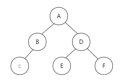 再看前序中的E、D、F,它的顺序是ABCDEF,那就意味着D是A节点的右孩子,E和F是D地子孙,注意,他们中其中一个不一定是孩子,有可能是孙子,再来看中序序列是CBAEDF,由E在D地左侧,而F在右侧,所以可以确定E是D的左孩子,F是D的右孩子。因此最终得到的为叉树如下图所示: