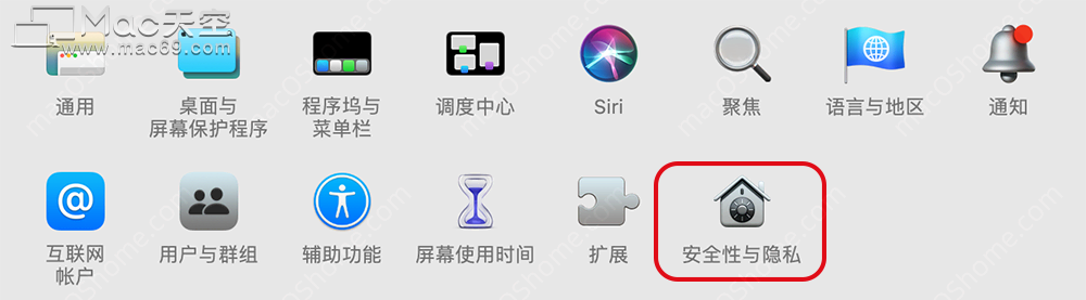 1.打开系统便好设置 &mDash; 安全性与隐私选项;