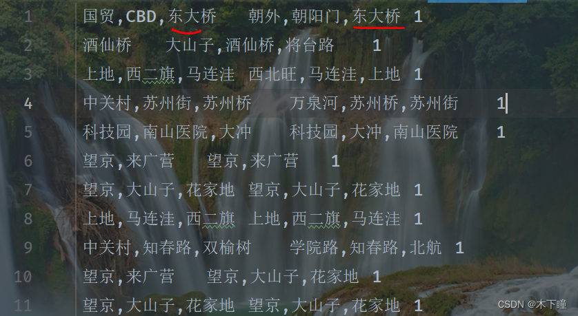 现在我搞了一个招聘数据,里面有办公区域列,处理过了,每一行代表【地址1\t地址2\t相似度】