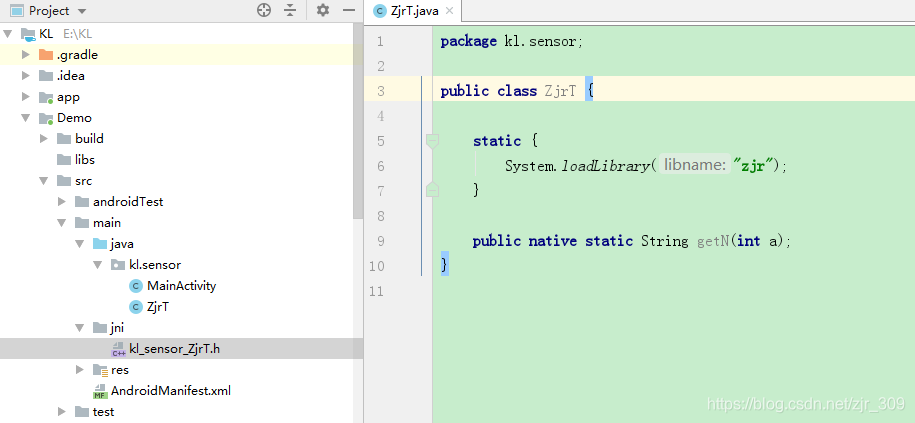 在Module中会自动生成jni文件夹,下面自动生成了一个kl_sensor_ZjrT.h文件。