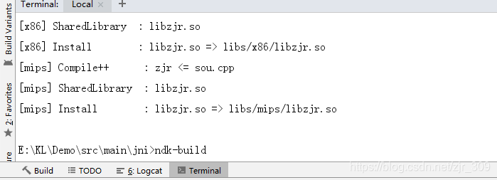 4、在Terminal中进入到jni,然后输入ndk-build,按回车Enter,即可