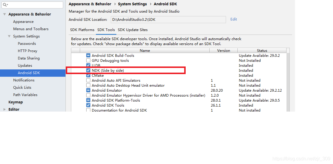 在Android studio的工具栏点击SDK Manager的图标,去安装NDK。