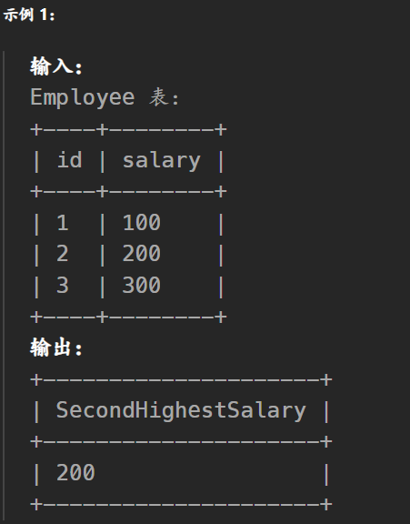 表中第二高的 不同 薪水 。如果不存在第二高的薪水,查询应该返回 null(Pandas 则返回 None)