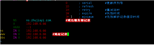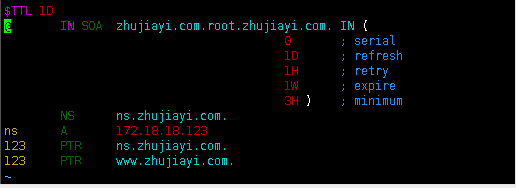 反向解析的作用是根据IP地址查找到对应的主机名(域名),在区域文件(named.rfc1912.zones)中默认已存在一些注释内容与区域信息,可不需要删除上面实验及默认区域信息,直接在下面追加即可。