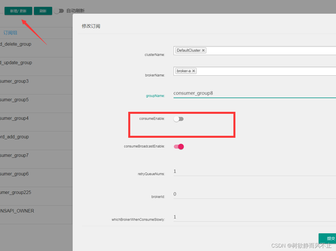 console中手动新建消费组,把启用消费关掉