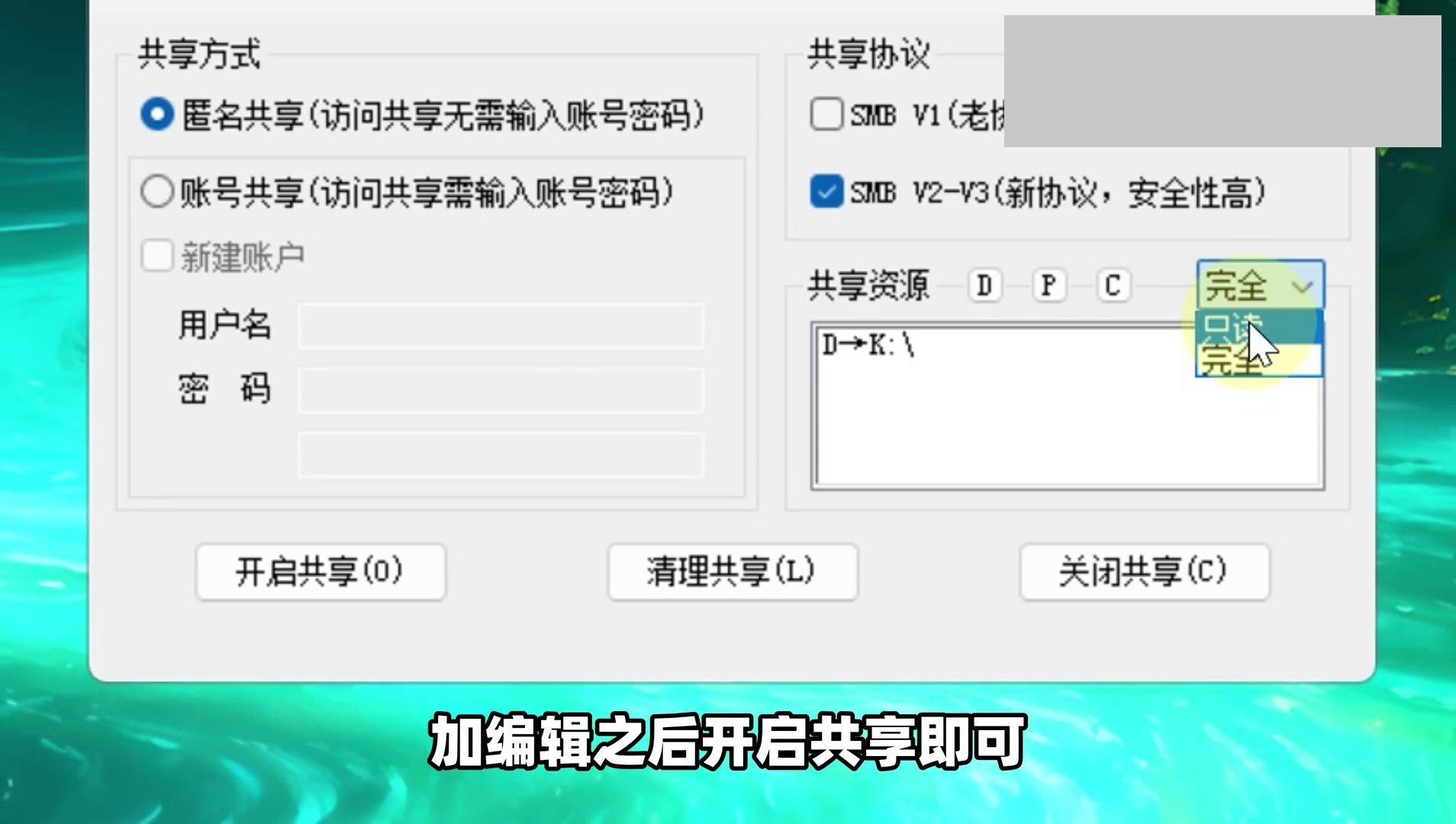 开启共享