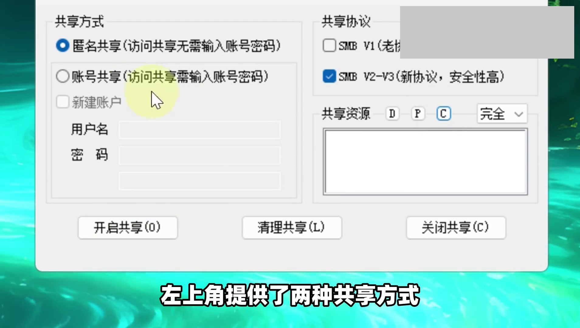 提供两种共享模式选择