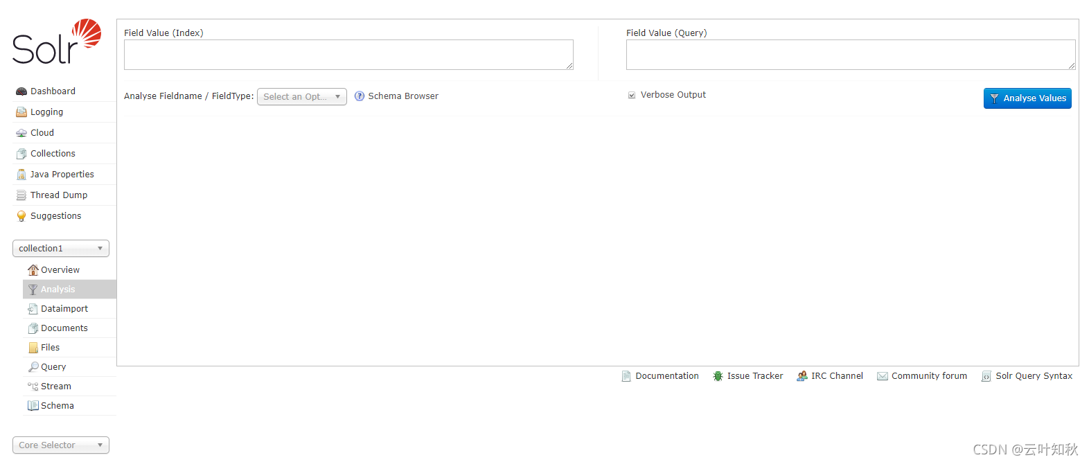 左边部分是针对索引解析器的处理过程,右边部分是针对查询解析器的处理过程,我们来做一下测试,选择底部的字段或者字段类型,这里我们选择content字段,输入“I love you”,然后点击Analyse Values按钮,让我们来看一下索引解析器和查询解析器的处理结果