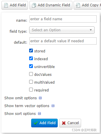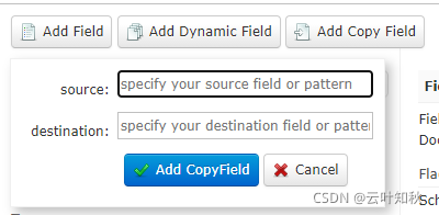 3.Add Copy Field:添加拷贝字段,拷贝字段主要是将索引文档的多个字段映射到该字段,后续可通过查询该字段实现多个字段的查询功能,配置界面如下: