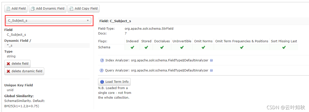 点击下拉列表,可以选择现有的字段列表,这里我们选择C_Subject_s字段,右边显示该字段的相关属性,显示如下: