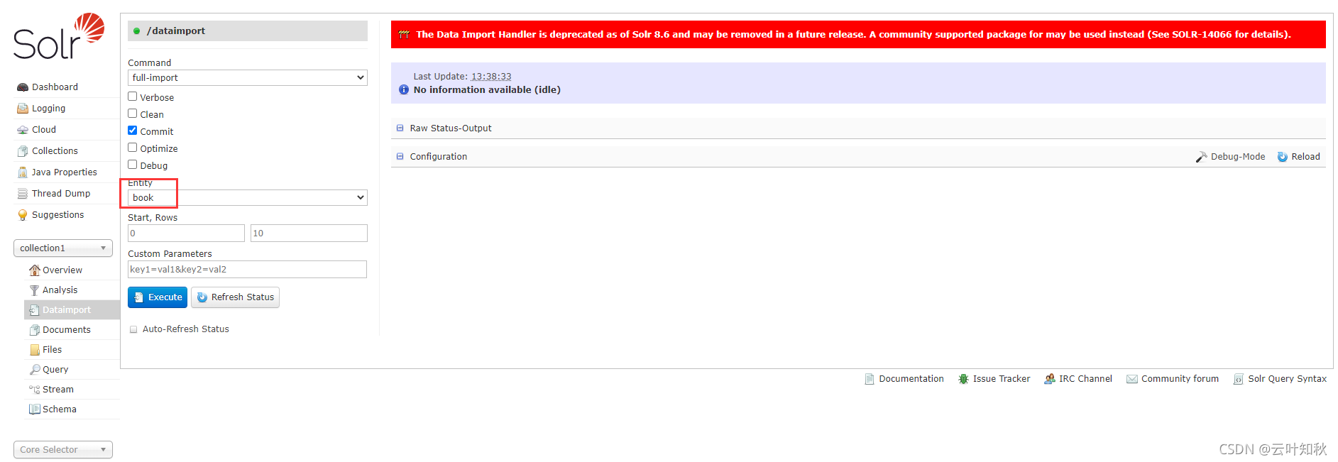 配置完后,在Solr管理控制台,点击dataimport菜单