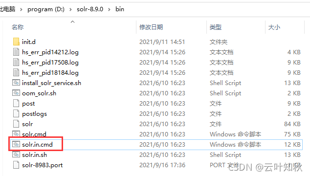 打开目录d:\solr-8.9.0\bin,可以看到文件列表如下: