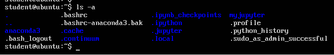 1、ubuntu登录目录下,利用ls -a 命令,查看目录中的所有文件和目录,包括系统隐藏目录。我们要找的是.jupyter目录,注意这里jupyter前面有个点。