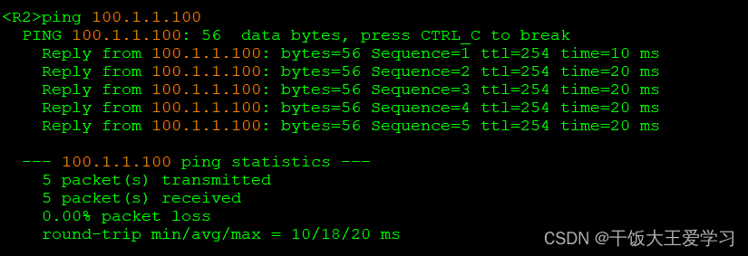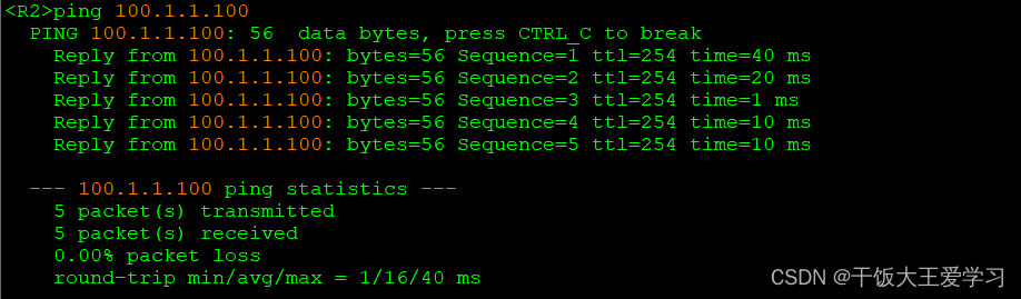 [R1]ip route-static 0.0.0.0 0 10.1.1.2 //注意R1配置默认路由能够到达R2即可,R2无需配置路由回来,这样才能体现出NTA的效果