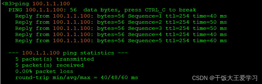 6. 测试结果,外网用户能够ping通内网用户映射出来的公网地址,在没有配置路由的情况下可以能够ping通,仅此而已,内网用户是无法ping通外网用户的,因为没有路由可以到达