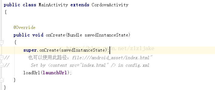 第一种继承CordivaActivity类,然后直接使用loadUrl(launchUrl)即可。这里的launchUrl指向config.xml里面的<content src= "index.html"/>,此时的index.html是我们项目本地www文件夹下的网址,只需要替换成服务器上的地址即可。例如改成<content src= "http://www.baidu.com"/>,就可以直接打开百度的网页。