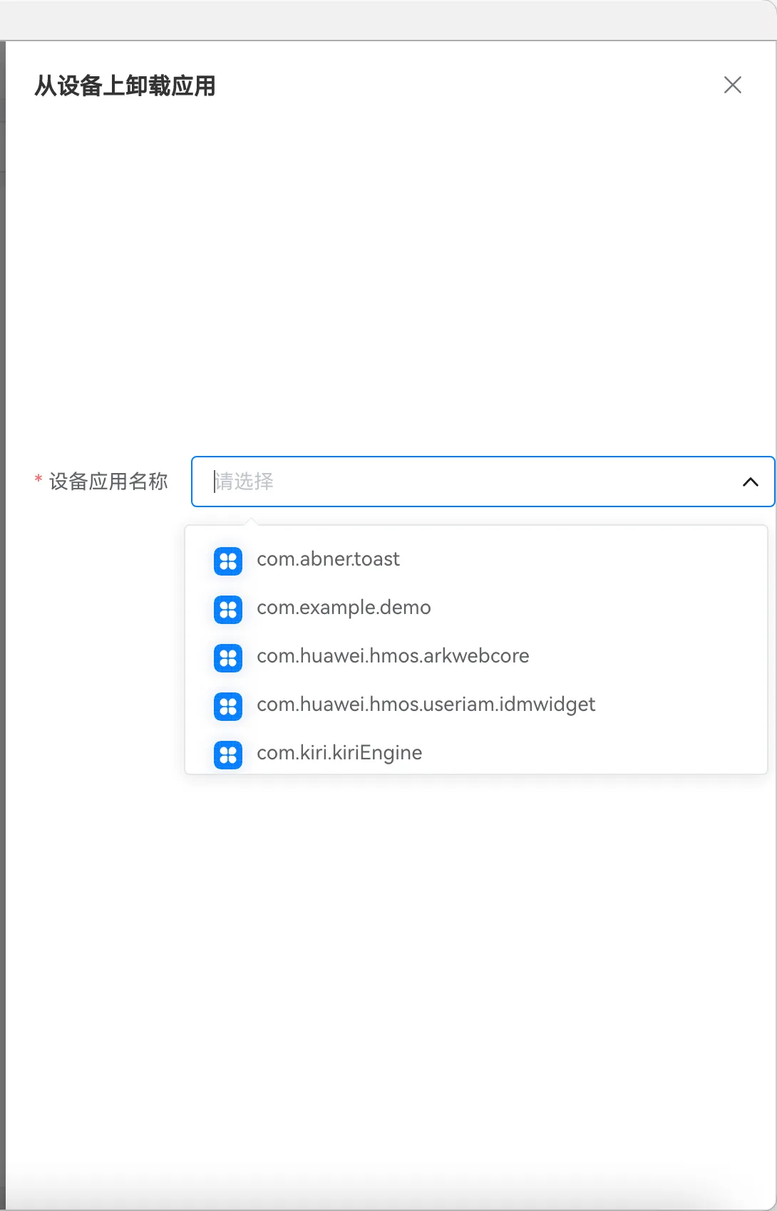 卸载应用,点击后会弹出当前设备已经安装的应用包名,点击需要卸载的应用即可。