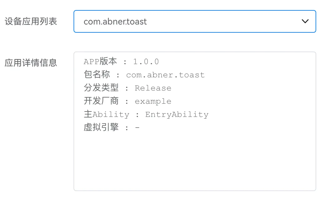 应用信息,在选择了要查看的应用之后,就可以看到此应用的一些常见信息,如包名,版本号等。