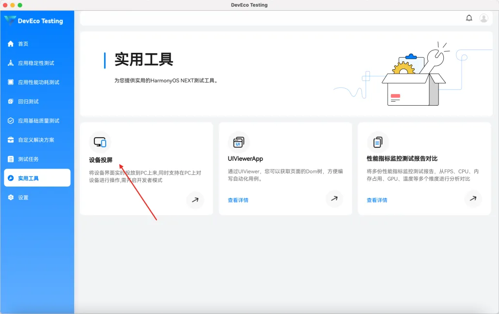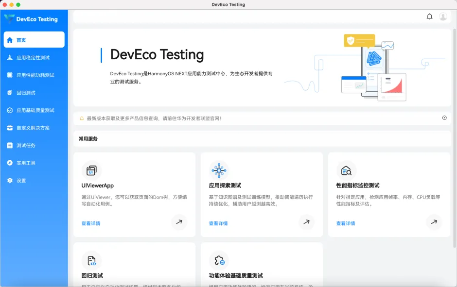 DevEco Testing,按照官方解读,它是一个一站式的应用测试服务平台,不仅可以为开发者提供自动化测试框架,还能提供稳定性、性能等专项的测试服务,基本上覆盖了应用测试的全周期,既然说的这么强大,那么就不得去探究一番了,可以很负责任的提前告诉大家,官方所言非虚,确实真的强大,不仅仅有测试功能,还有常见的投屏,查看布局结构等非常实用的功能。
