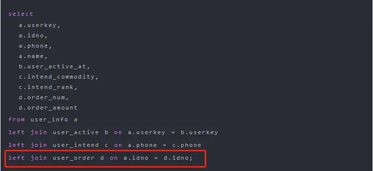 就可以推测出是在执行下面红框中代码时出现了数据倾斜,因为这行的表的别名是 d: